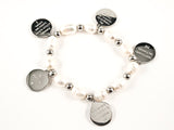 Pearls & Round 10 Commandments Engraving Gold Tone Disc Stretch Bracelet.
